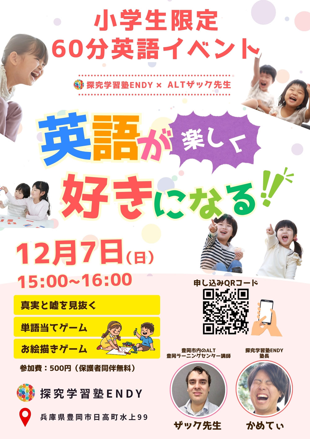 ENDYより小学生限定の英語イベント開催のお知らせです🎈