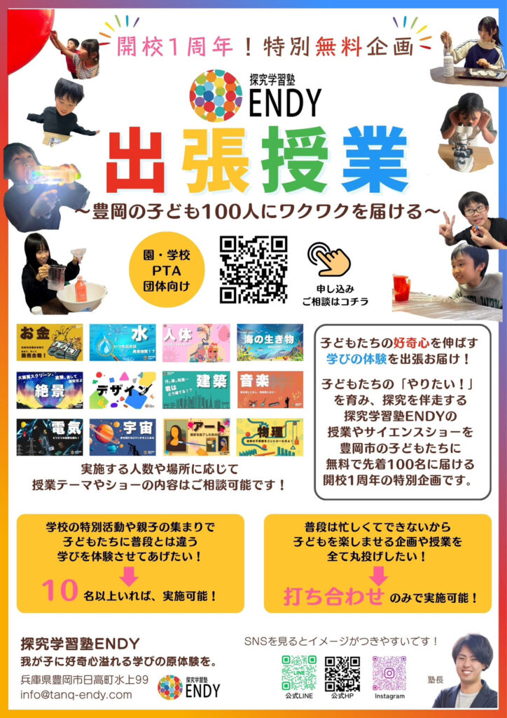 ENDY開校1周年企画「無料出張授業」のお知らせ